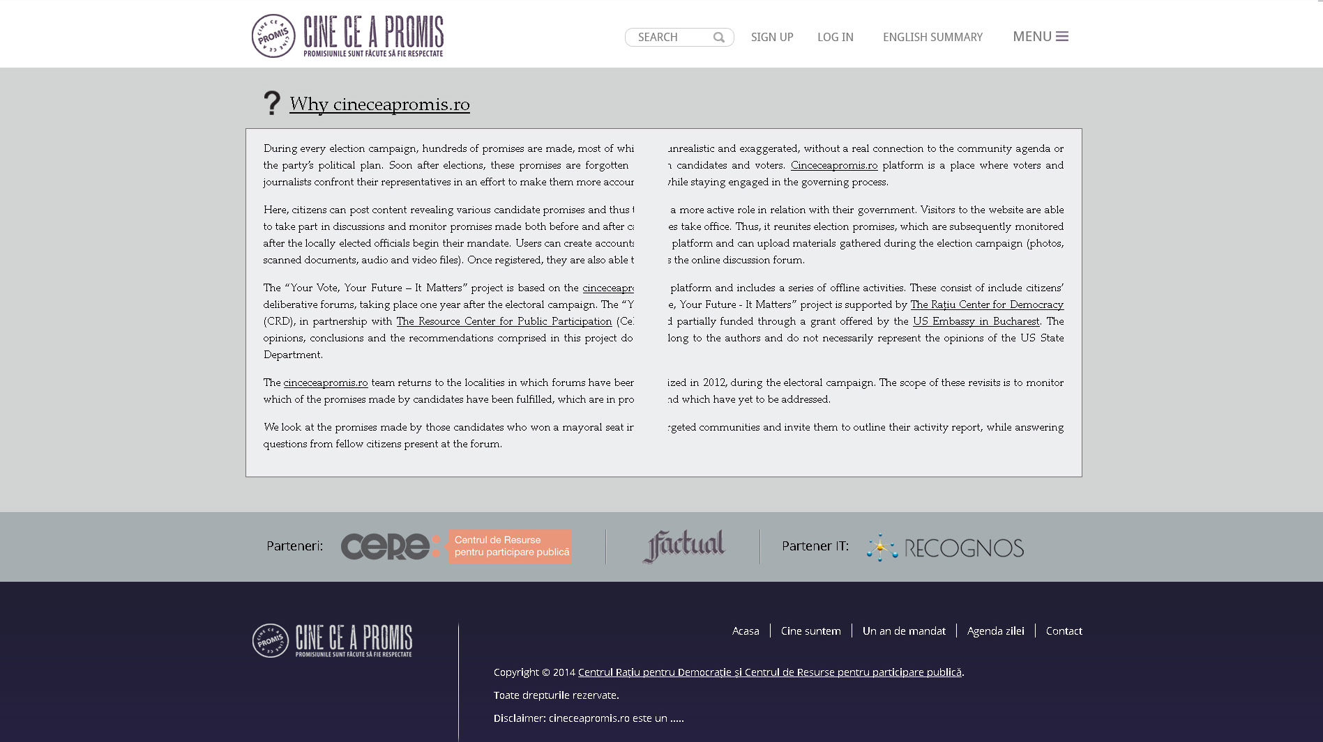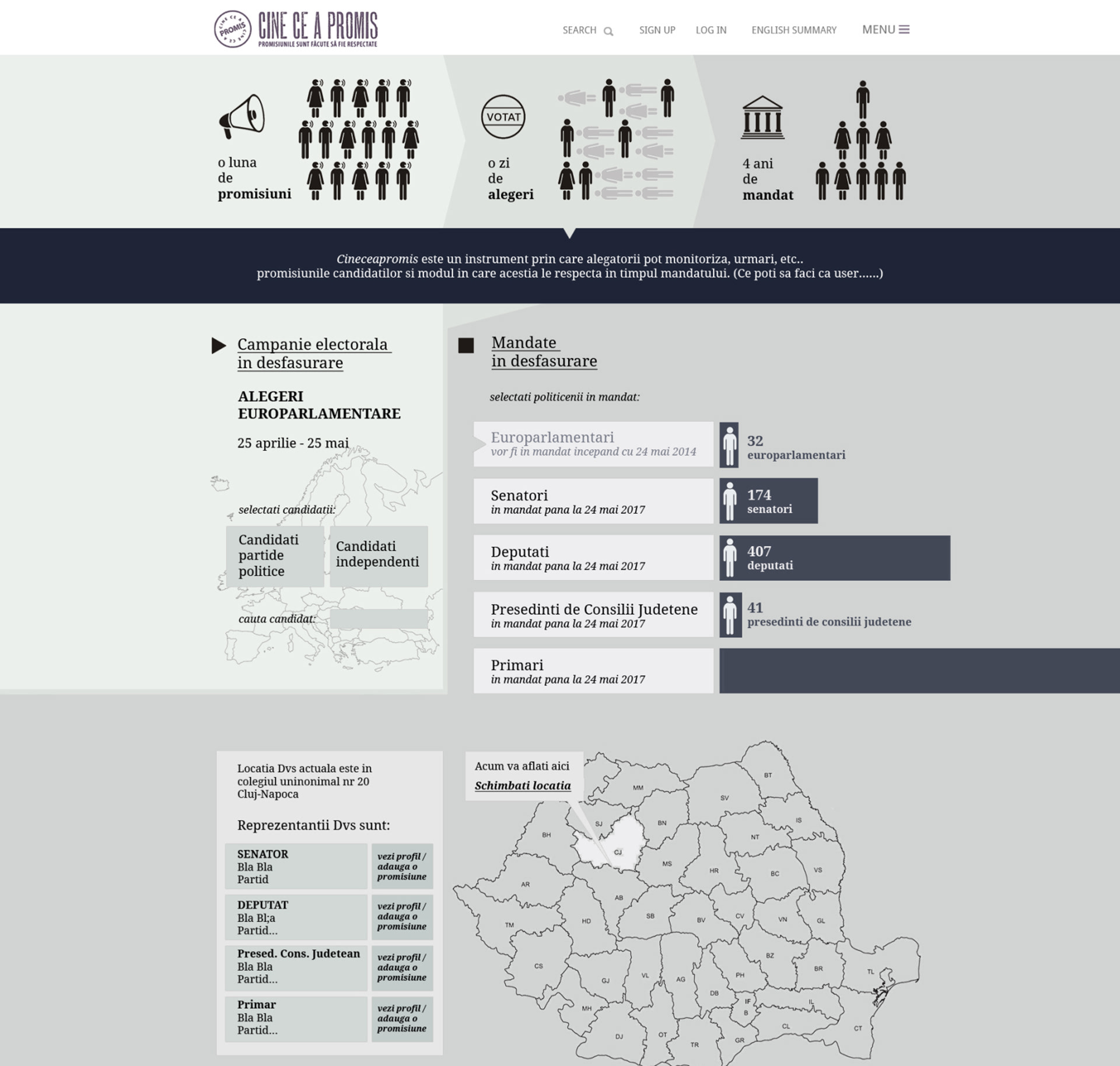 2014, web design for the interactive platform cineceapromis, monitoring the vows and promises politicians make during their campaign, and see how well those of them who get elected are keeping them.