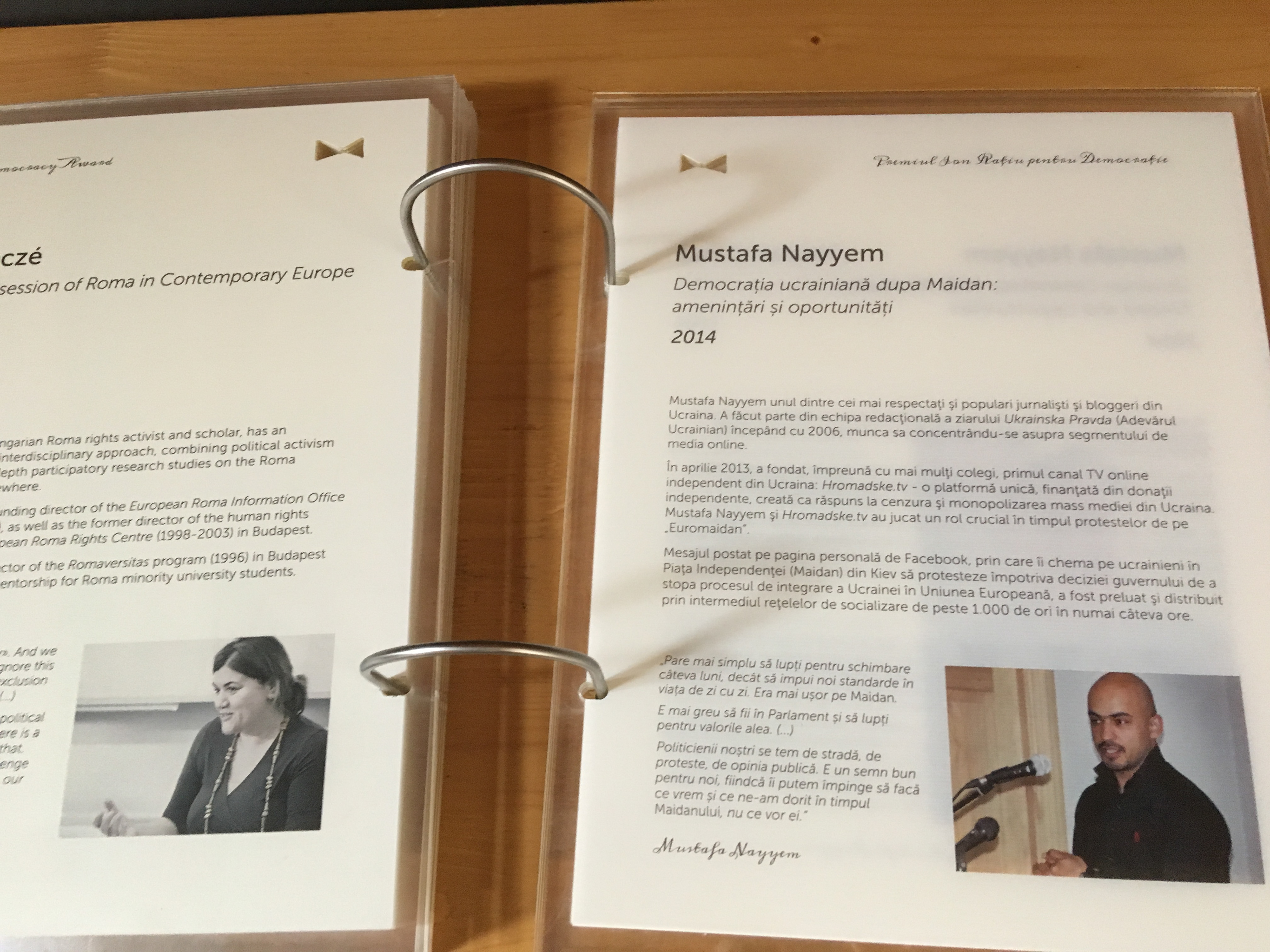 For the Ion Ratiu Democracy Award, which had been first awarded in 2005, I decided to produce a book system, where each awardee will have a page, and each year the book is updated easily.